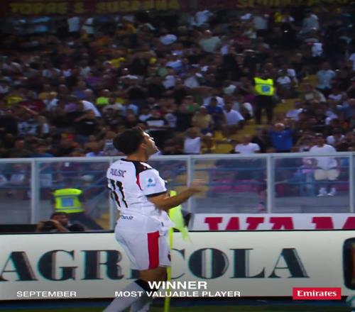 普利西奇9月份为米兰出战4场比赛,打进4球,助攻2次,经过球迷的投票,他当选米兰9月最佳球员。