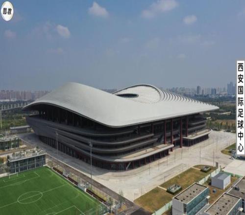 陕西省唯一的中甲球队是陕西联合,其主场是原计划用于承办2023中国亚洲杯的西安国际足球中心(容量约6万人),它由扎哈·哈迪德建筑事务所(Zaha Hadid)设计,虽然不是由扎哈亲自操刀(扎哈已于2016年去世),但仍然突出了扎哈对于百叶线条的偏好,其屋顶呈流线型波浪结构,既像被风吹起的绸缎,也像远方的沙丘,象征着西安是丝绸之路的主要起点之一。